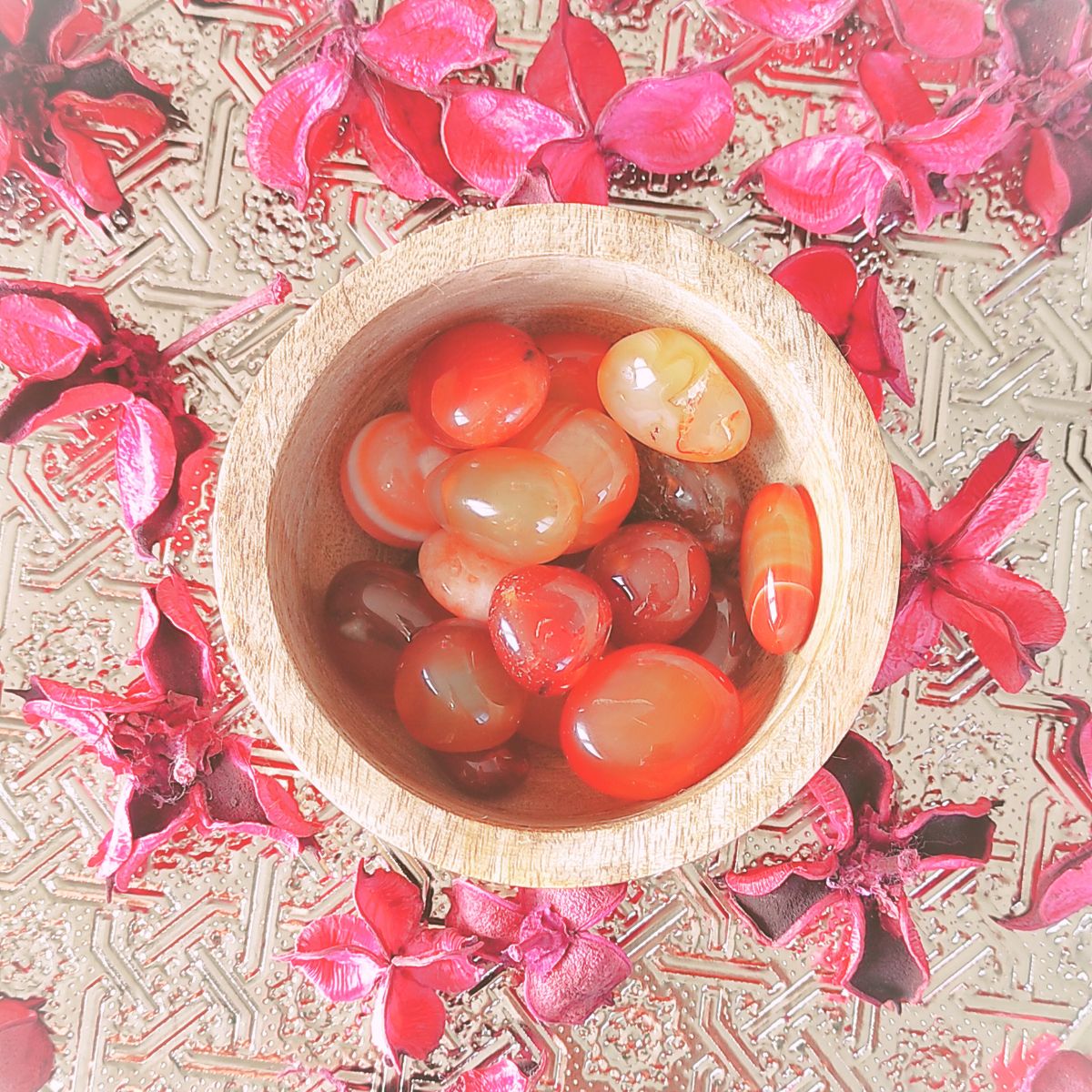 - La cornaline est associée à la confiance en soi et à l’estime de soi. Elle peut aider à surmonter les peurs et à renforcer le courage.